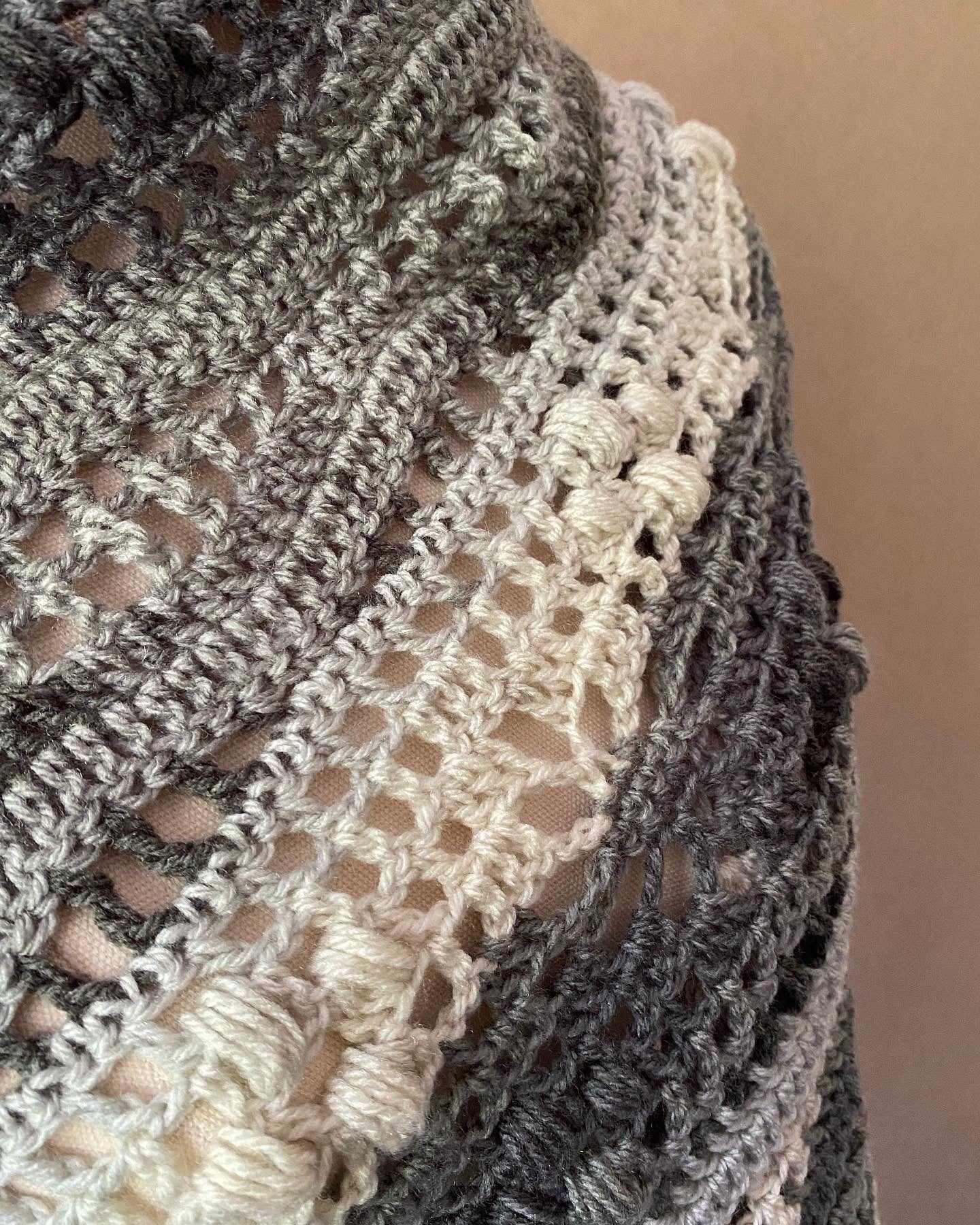 This beautiful triangle shawl is both elegant and functional, perfect for an evening out in town or to help accessorize a lovely dress to a nice event. It has a wonderful texture, adding to its uniqueness. Regardless of what outfit you pair with this statement piece, you are bound to get compliments anywhere you choose to wear it.