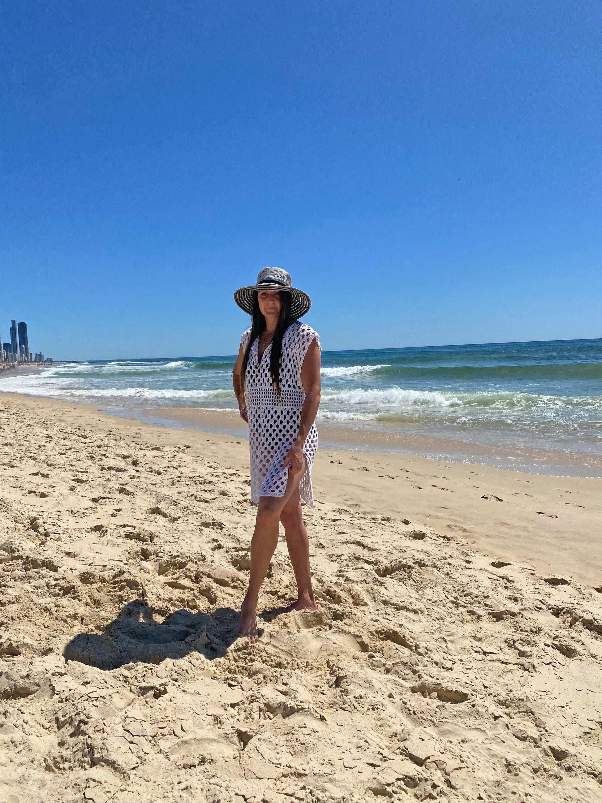 This simple and feminine tunic-style beach cover-up has been designed with the modest, Jane Bennet, in mind. With the combination of the sturdy honeycomb stitch and the simple grid, we tried to maintain Jane’s feminine side as well as her modest side. This cover-up has been carefully and lovingly handmade with 100% cotton, ensuring you’ll have an heirloom item that will last. Show off your lovely curves in style at the pool or at the beach with this lovely accessory.