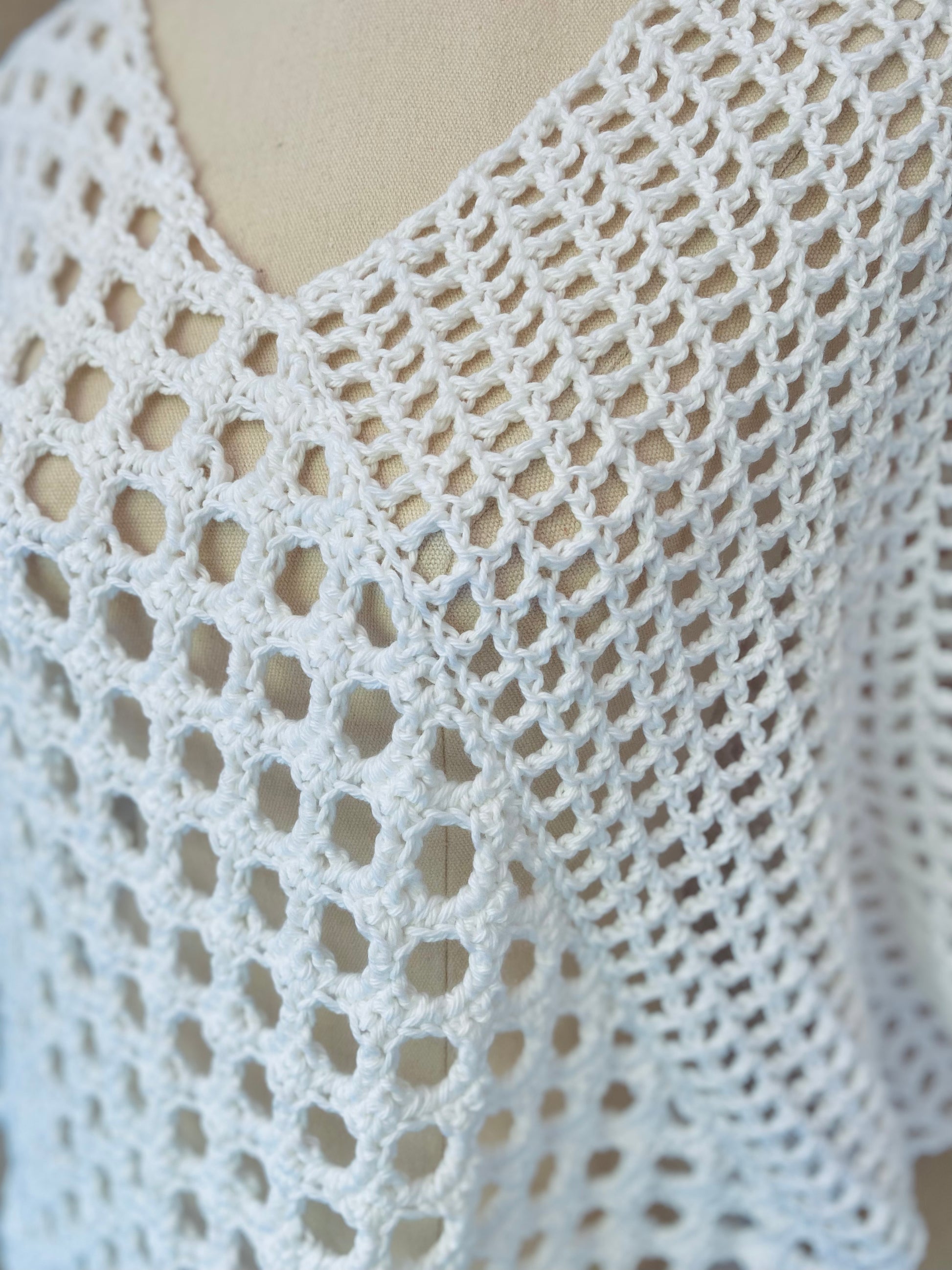 This simple and feminine poncho has been designed with the modest, Jane Bennet, in mind. With the combination of the sturdy honeycomb stitch and the simple grid, we tried to maintain Jane’s feminine side as well as her modest side. This poncho has been carefully and lovingly handmade with 100% cotton, ensuring you’ll have an heirloom item that will last. You can wear this lovely poncho to any event, dress it up with a summer dress, or dress it down with a pair of jeans and your favourite shirt or blouse. Plus, the versatility of this accessory makes it must have for any wardrobe!